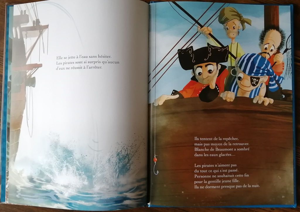 Il y a dans cette légende, tout pour plaire au public : de l’amour et des pirates. Martine Latulippe nous fait voyager des Côtes de la Normandie jusqu’à celles du Québec alors que Blanche décide de rejoindre son fiancé en Nouvelle-France. Malheureusement, le bateau qui transportait Blanche se fait attaquer et elle devient prisonnière de méchants pirates.
